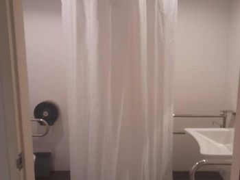 Прилагаю реальные фото номера этого отеля. Фото штор это в номере, не в ванной комнате.