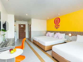 Отличное месторасположение отеля, рядом ТЦ Фестиваль, самый центр города, тук-туки, кафешки, массажные салоны - всё рядом. До пляжа прогулочным шагом 5-7 минут. В отеле два бассейна: один большой, с горкой, всегда открыт, в нём, мы видели, плавают даже ночью, никого не выгоняют. Второй поменьше на 8-ом этаже 1-го корпуса, в нём практически никогда не бывает людей, очень спокойно. Этот бассейн на ночь закрывают. Уборка в номерах ежедневная, не сказать, что тщательная, но кровати застилают, полотенца меняют, полы протирают. Не знаю, как в других номерах, но в нашем кондиционер был расположен неудачно, дул прямо на кровати, приходилось ложиться головой в обратную сторону и даже отодвигать кровать от стены, чтобы меньше дуло, так под кроватью как лежал чей-то забытый носок, так и остался лежать, то есть, под кровати с уборкой даже не заглядывают. Завтраки оценить не можем, так как бронировали отель без завтраков, да и смысла в этом не вижу, рядом куча кафешек где можно перекусить и Фестиваль с большим фуд кортом. В номере есть раковина, посуда, микроволновка, большой холодильник, ежедневно ставят по бутылке воды на человека.