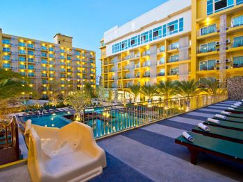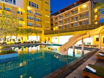Отличное месторасположение отеля, рядом ТЦ Фестиваль, самый центр города, тук-туки, кафешки, массажные салоны - всё рядом. До пляжа прогулочным шагом 5-7 минут. В отеле два бассейна: один большой, с горкой, всегда открыт, в нём, мы видели, плавают даже ночью, никого не выгоняют. Второй поменьше на 8-ом этаже 1-го корпуса, в нём практически никогда не бывает людей, очень спокойно. Этот бассейн на ночь закрывают. Уборка в номерах ежедневная, не сказать, что тщательная, но кровати застилают, полотенца меняют, полы протирают. Не знаю, как в других номерах, но в нашем кондиционер был расположен неудачно, дул прямо на кровати, приходилось ложиться головой в обратную сторону и даже отодвигать кровать от стены, чтобы меньше дуло, так под кроватью как лежал чей-то забытый носок, так и остался лежать, то есть, под кровати с уборкой даже не заглядывают. Завтраки оценить не можем, так как бронировали отель без завтраков, да и смысла в этом не вижу, рядом куча кафешек где можно перекусить и Фестиваль с большим фуд кортом. В номере есть раковина, посуда, микроволновка, большой холодильник, ежедневно ставят по бутылке воды на человека.