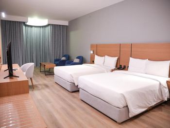 Номер с двумя двуспальными кроватями для семьи с детьми подходящий.
