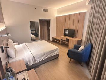 Персонал вежливый. Уборка каждый день. Вай-фай бесплатный. Расположение хорошее. Рядом много кафе: Пица Хат, КФС. Торговый центр через дорогу, в нм большой продуктовый магазин, магазин техники (Плейстейшен 5 стоит 1700 дирхам, не дорого). Так же в торговом центре есть Макдональдс. Рядом с отелем 2 парка, где люди занимаются спортом или просто гуляют. Были в парке Ворнер Бразерс, очень понравилось. За 50$ в сутки это самый отличный отель. Так что я доволен. Рекомендую останавливаться в этом отеле, потому что цена доступная, расположение хорошее, в номере чисто. The staff is polite. Cleaning every day. Wi-Fi is free. The location is good. There are many cafes nearby: Pizza Hut, KFS. The shopping center is across the street, in nm there is a large grocery store, a hardware store (Playstation 5 costs 1700 dirhams, inexpensive). There is also a McDonald's in the mall. There are 2 parks near the hotel where people play sports or just walk. We were in Warner Brothers Park, I really liked it. For $50 a night, this is the most excellent hotel. So I'm happy. I recommend staying at this hotel because the price is affordable, the location is good, the room is clean.
