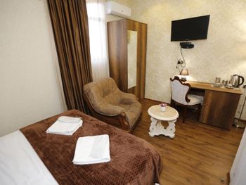Мы оплатили 5 дней, но смогли выдержать только одну ночь. Если вы не хотите испортить своё путешествие в прекрасную Грузию, не рекомендую останавливаться в этом отеле. Мы отдыхали семьёй с родителями и маленьким ребенком. Самая первая трудность при заезде это очень узкая и крутая лестница по которой очень трудно подниматься с чемоданом. Было очень негигиенично. Сильный запах сигарет. Холодно и неуютно. Грязные матрасы, а полотенца были серыми и пахли неприятно. При заселении наша ванная комната была залита водой, и убрана плохо. Когда мы обратились к хозяйке, она сказала, что вода “сама высохнет”. Вечером вода была все еще там и при становление на плитку выступала наружу… Телевизор можно было переключать только зубочисткой. В чем конечно же виноваты были другие постояльцы. Пульт был ужасно грязный и липкий. Дверь туалета в нашей комнате открывалась только снаружи, если вы путешествуете одни, рискуете остаться там… Мы были с маленьким ребёнком, поэтому категорически не советую. Посуда была липкая и грязная. Комнаты очень маленькие, и, поскольку наша племянница заболела, мы вынуждены были ужинать в отеле. Накрыли стол в коридоре, где стоял столик, после еды всё убрали и даже помыли пол. Тем не менее, хозяйка сделала нам утром замечание, что мы должны есть только в комнате. Мы не хотели больше там оставаться, сообщили о том что мы уезжаем и после этого она начала за мной бегать и пытаться выяснять отношения, что нас тут не устраивает и чтобы мы не смели писать негативный отзыв. Так как если вас вдруг что-то не устраивает проблема конечно в вас. Она предложила нам переселиться в другую комнату, но после всего, что мы там увидели, мы просто не захотели оставаться. При выезде она попросила оставить ключи в двери . Мои родители так и сделали, ключ был внутри, закрыли дверь, и дверь захлопнулась, после чего хозяйка закричала, что мы украли ключ и я должна была посмотреть на камерах, как мои родители крадут у нее ключ.