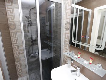 Немного расстроила звукоизоляция. Попались немного шумные соседи и это доставило неудобство. Местоположение конечно нельзя изменить, но все же не хотелось бы на отдыхе видеть из окна жилое девятиэтажное здание. В номере нет утюга и гладильной доски, хотя это было заявлено на сайте.