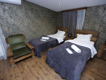 Холодно и грязно, сперва заселили в грязный номер, потом дали убраный, но отопление не работает, горячей воды нет, ещё и на деньги разводят, обращайте внимание на бельё за 10 лари