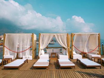 В отеле ремонт не делался 10 лет,сервис отеля в прямом смысле умирает,обслуживающий персонал -люди с Казахстана-грубые,уборка номера за 4 дня -один раз,полотенца выдают только если попросить на ресепшене,а если прийти в отель после 24 то можно не найти свой номер,поскольку освещение не работает, на пляже лежаков такое количество, что между ними не пройти ,если на удие прийти к 20 то еды может не остаться ,т к не докладывают ничего