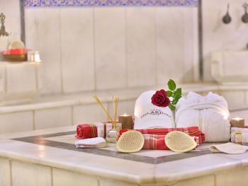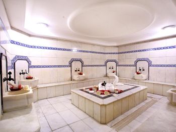 Guests can rejuvenate with professional massages and therapy options, or relax in the sauna and traditional Turkish bath.