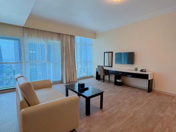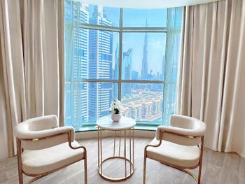 Отличное расположение и прекрасный вид. Останавливались на 1 ночь, люкс с 1 спальней с видом на бурдж халифа. 30 этаж с огромным балконом. Кафе/ресторана нет. 2 минуты от метро. 9 минут до станции Бурдж Халифа. На углу макдак.