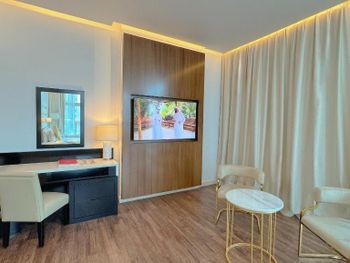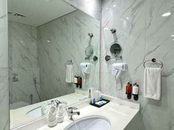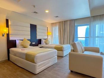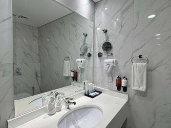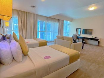 Ужасное место. Все началось с ресепшена: мы не могли оплатить букинг картой, так как ее у нас нет, и соответственно хотели оплатить налом. Назвав номер и все детали, нам сумму меняли три раза, видимо, все никак не мог сложить цену этому «шикарному номеру» Ну, а самое интересное, это сам номер... Мы сняли с видом на Бурдж Халифа с завтраком на 4 ночи. Номера в ужасном состояние, в пыли, там не убирались походу никогда ... Мы понимаем, что номер не премиум-сегмента, но все равно...элементарно же можно пыль смахнуть и полы помыть ?! Ни полотенец, ни тапочек, ни воды, ни косметических средств. Сервиса ноль! Они, конечно, по просьбе все выдали, но с таким недовольным лицом.. За все 4 ночи никто не убирал в номере, один раз принесли расходники, не забрав даже мусор, и все! Как полы были грязными, так и остались... Единственное, что было шикарно- это вид и расположение отеля. Но и здесь есть нюанс- окна очень пыльные (даже кто-то оставил там отзыв) Ну и изюминка на торте- мы оплатили номер с завтраком за 2чел, а в столовой сказали, что оплачено за одного (это как?!?) Я пошла разбираться на ресепшен, в ответ услышала «все ок, передали информацию», но в итоге каждое утро все повторялось заново. Видела положительные отзывы- очень удивлена им А с другой стороны, может это нам так не повезло ....