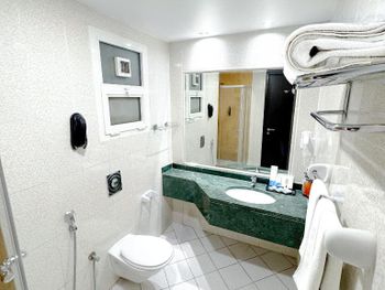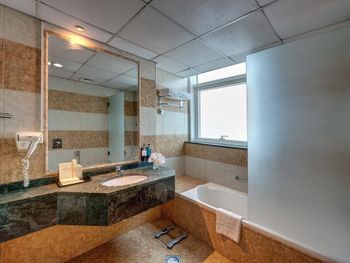 Очень грязные комнаты, особенно ванная. Не было всех туалетных принадлежностей. Цена совсем не соответствует качеству. Я не продлила бронь через сайт и менеджер отеля зашёл проверить останусь я ещё на 1 ночь или нет, а так как оставалось пол дня до завершения моих дел и моих чемоданов было несколько, я решила потерпеть ещё одну ночь и остаться в этой же гостинице, и поэтому я подтвердила ему лично что останусь ещё, он сказал ок мэм можете оставаться сколько хотите. Я дальше занялась своими делами , но через 2 часа подошёл менеджер и попросил меня освободить номер. Это было крайне странно, так как я подтвердила бронь другому менеджеру отеля , но этот все же просил меня выселиться, ссылаясь на то что мест в гостинице нет , а гостей много. В грубой форме он просил выселиться из номера , я не стала с ним ругаться, а подумала шёл был куда подальше , что гостиниц мало в Дубае , и тем более из-за грязного номера с удовольствием уехала. Нашла гостиницу Gulf Court Business Bay, по той же цене но в 100 раз лучше , очень чистая , уютная красивая гостиница с афигенными номерами и осень вежливый персонал. Даже когда мне нужно было выезжать , разрешили мне задержаться на пару часов ещё. Вывод - никогда больше не выберу и никому не посоветую гостиницу Emirates Grand Hotel