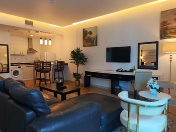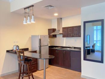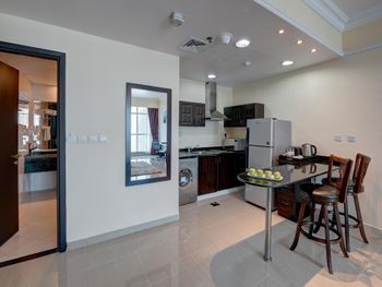 Удобное расположение у метро, до лучшего пляжа La Mer на такси 15 минут за 25AED. Лифты ходят быстро. Была стирально-сушильная машина. Мне пригодилась. И утюг с доской тоже.
