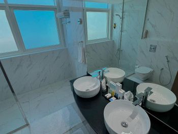 Очень грязно, номер не убирали по несколько дней. Окна грязные. Шторы грязные. Под диванами слой пыли. Полотенца забирали но приносили через день. Сами полотенца серые. Постельное белье не первой свежести, серое. В номере пахнет канализацией. Проблемы с электричеством. Постоянно выбивало пробки. Приходилось звонить на рецепшин. Пока не увидел где предохранители и ходил включал сам. Жили высоко. Лифты работают отвратительно. Останавливаются на каждом этаже. Не рекомендую этот отель, тем более за такие деньги.