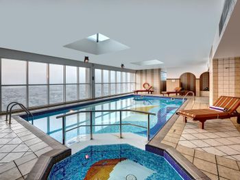 • An ideal destination for business, leisure, or families, our spacious modern rooms include a seating area. On-site leisure options include a gym, indoor swimming pool, steam room, jacuzzi, and sauna, all offering stunning panoramic city views. The Healthy Kitchen restaurant, located on the Mezzanine floor, offers a daily international buffet breakfast.