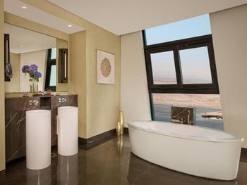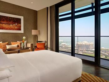 Месторасположение прекрасное. Близко президентский дворец, роскошный Эмирэйт палас, тц Марина молл, остановка экскурсионного автобуса, алкомаркет, супермаркет, всё в пешей доступности. Русскоговорящий персонал очень хороший! Отдельное спасибо Кириллу! Любую просьбу, вопрос стараются решить и решить быстро. Молодцы! Номер с видом на море очень понравился. Вид роскошный.