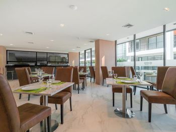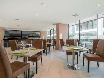 Новенький,чистый отель. Номер хороший, с небольшой кухней и с видом на бассейн. Есть все необходимое для разогрева пищи( микроволновка) , чайные принадлежности. Завтраки стандартные. Не лучше,не хуже чем в других отелях.