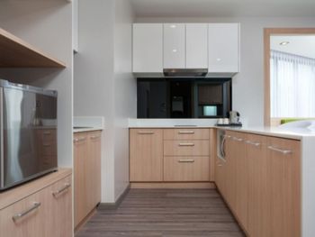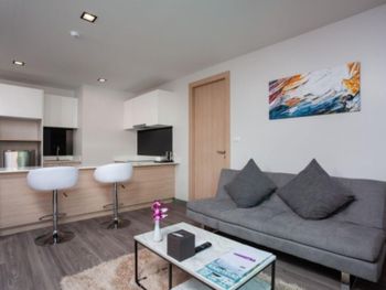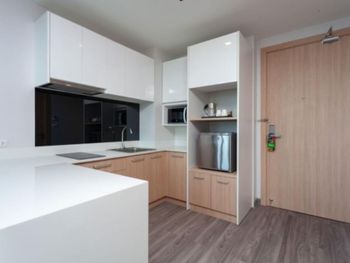 Отличное месторасположение , тихо и спокойно!! Отличный современный отель , уборка каждый день . Отличная кровать . Кухня с плитой и всем сервизом . Особо хочется отметить подземный паркинг , откуда на лифте спокойно поднимаешься к себе на этаж !
