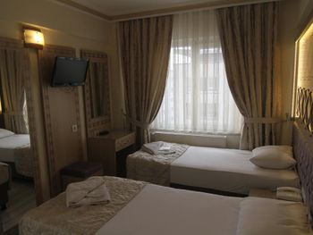 В Стамбуле не первый раз и есть с чем сравнить. В выборе подкупило фото из ресторана с видом на море. И вид действительно шикарный. Теперь о неприятном. В душе плесень и сломан - НО в течении 5 минут все починили. В номере на одного человека 1 (!?) полотенце - оно же банное, оно же для лица, оно же и для ног, по 1 шт. мыла и шампуни - гель для душа отсутствовал. В номере НЕТ чайника и стаканов. Взять кипяток можно только в ресторане и только до 10 часов утра, в 10-03 уже закрыто. То есть в гостинице ты не можеш выпить горячего чая, даже если он у тебя есть свой. Мы много путешествуем - но с таким столкнулись впервые. Относительно уборки. В номере не убирали. Но есть табличка с просьбой об уборке в номере. Так что при необходимости - повесил на дверь табличку - у тебя в номере убрали.