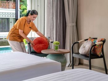 Останавливались в номере со своим бассейном. Идея очень классная, когда из номера выходишь в бассейн. Но это требует регулярного обслуживания. Бассейн был грязный, к сожалению. Ветки, листки, насекомые, грязное дно. В целом, купаться можно было, но не особо приятно в нечистом бассейне. То же самое было и в общем бассейне - весь был в мусоре. При этом были работники, которые вроде как чистили бассейны, но как-будто только делали вид, потому что он все равно грязный оставался.
