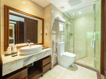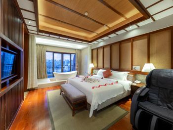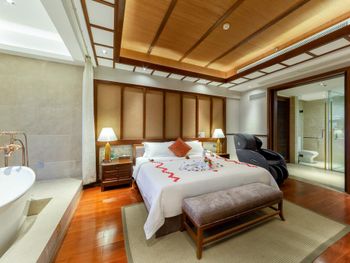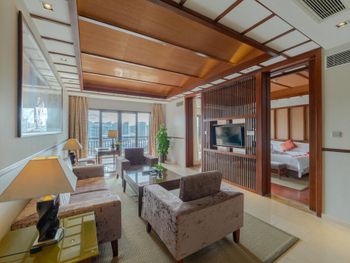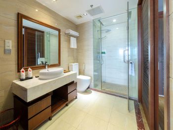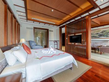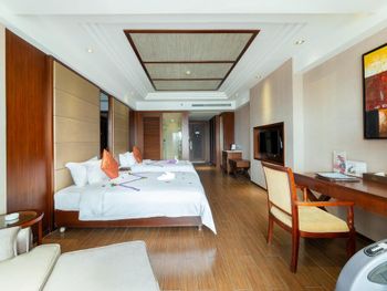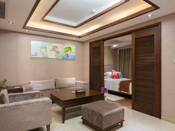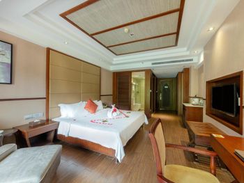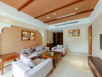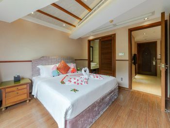 Мы полностью оплатили номер ещё перед поездкой. То есть была 100% предоплата 6120¥, но когда мы приехали персонал отеля сказал, что Букингу мы заплатили депозит за бронь, а оплатить мы должны в отеле 7000¥ (цена за номер плюс депозит). Мы пытались объяснить, что мы не должны им платить за номер, так как мы УЖЕ ЗАПЛАТИЛИ через букинг. И плюс депозит они со всех брали 500¥, а нам почему то сказали платить 900¥. Они говорили, что букинг вернёт нам этот депозит 6120¥ которые мы им заплатили, но это ложь чистой воды....в добавок персонал вообще не говорит по английски, но нашлась добрая женщина которая нам помогла и все переводила. В общем не знаю ошибка это была или нас пытались развести, но осадок очень неприятный. В итоге мы отказались платить эти деньги и толко заплатили депозит 500¥, которые нам вернули при выселении) Расположение очень далеко до пляжа, пришлось все время ездить на такси. Поесть нормально, а не в забегаловке тоже рядом негде. Под конец отключили горячую воду, потом выяснили что такая проблема была у многих, хотя горячая вода была и когда все пожаловались они сразу все включили. Белье за неделю поменяли один раз.