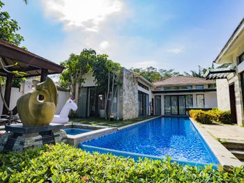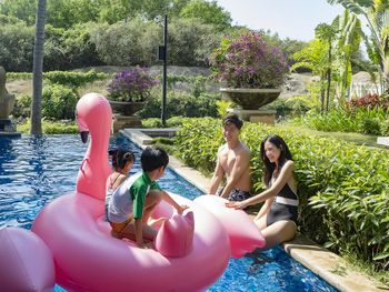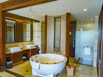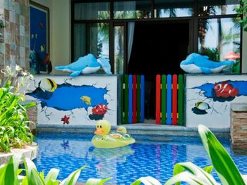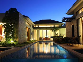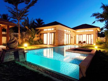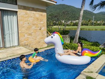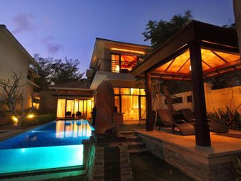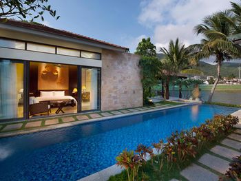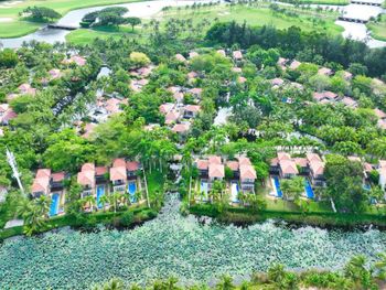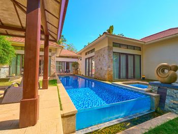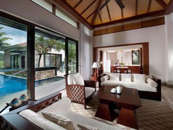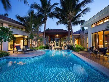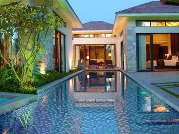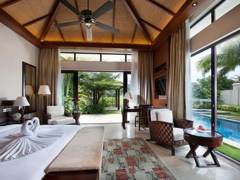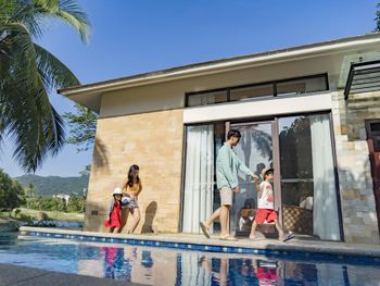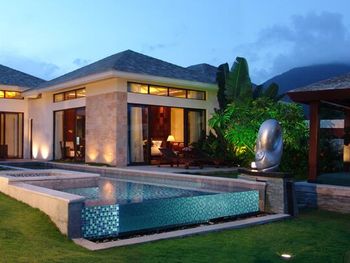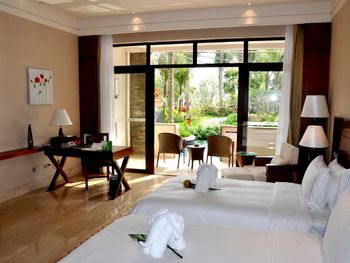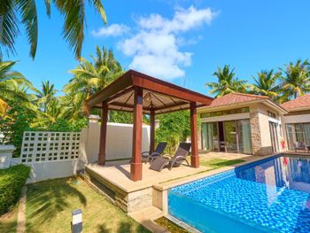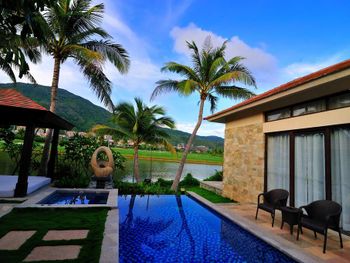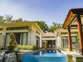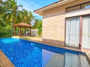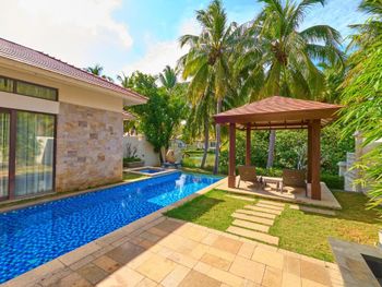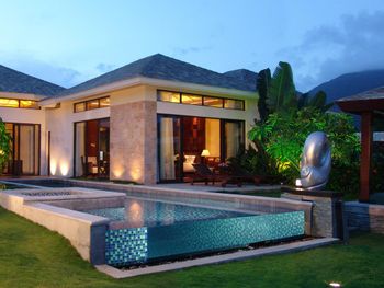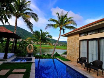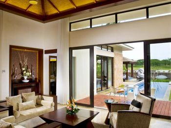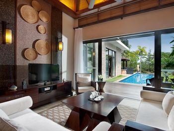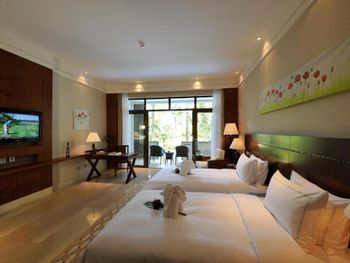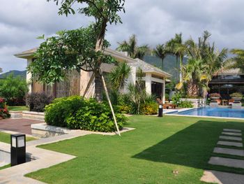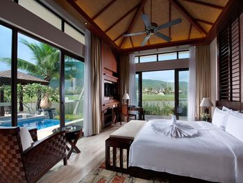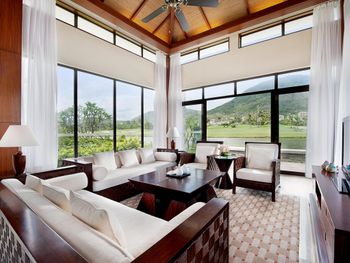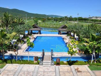 Жили на вилле с собственным бассейном. Много места, удобные кровати. Хорошие завтраки, тем кто плохо переносит китайскую еду есть что выбрать. Большая красивая территория у отеля. При заселении дают купон на игру в гольф в соседнем гольф-клубе.