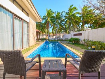 Отель сильно уставший, местами вилла требует ремонта. На вилле есть кухня, но из посуды только пара тарелок и бокалы. Ни ложек, ни вилок, ни ножа. Персонал не говорит на английском, но с переводчиком вполне можно объясниться. Далековато от всех кафе. Ездили каждый день на такси на обед и ужин. На территории отеля вечером очень душно, хотя в месте, где все кафешки, в это время вполне комфортно, возможно из-за того что от моря дальше. Ну и пауки, ящерки тут неотъемлемая часть отдыха, хотя в тропиках, неверное везде так )) В целом за свою цену вполне приличный отель.