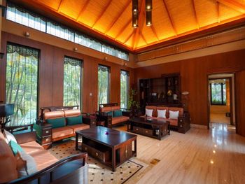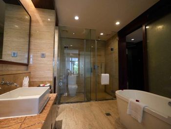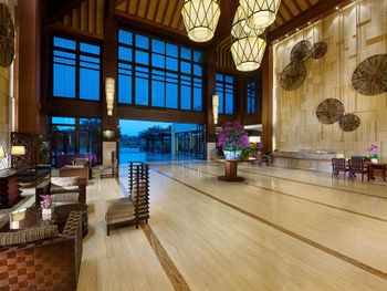 Полное отсутствие коммуникации с персоналом. Если вы не знаете китайского, то общение только через Гугл переводчик. По утрам душераздирающий звук болгарки вместо петухов для любителей жить на стройке. Кофе ужасный, в том числе в лобби кафе. Деньги меняйте заранее, меняют максимум 200 долларов и эта процедура на час. Бассейн на виллах без подогрева. Бассейн-река на территории высох. Отель требует реновации и нового персонала
