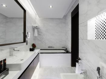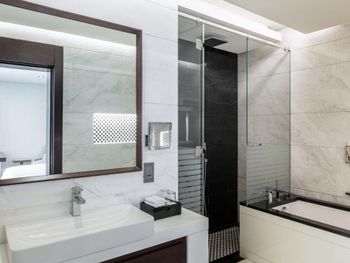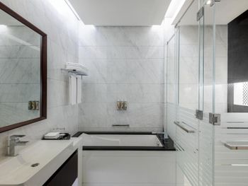 Гости отеля с 5 звездами Renaissance Business Bay Hotel, Dubai могут воспользоваться сауной и гидромассажной ванной.