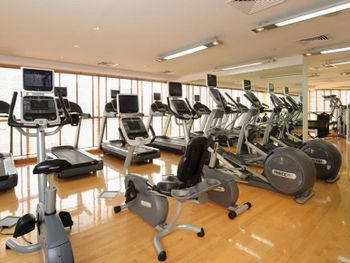 Большой отель, просторные хорошие номера, кровать большого размера, удобный матрас, свободно в фитнесе