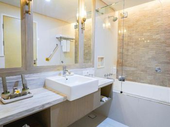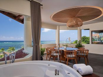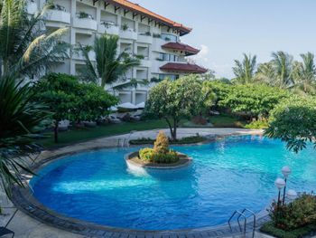Grand Mirage Resort & Thalasso Bali is a tropical haven nestled at the tip of Tanjung Benoa's stunning Nusa Dua Beach, just a 15-minute drive from Ngurah Rai Airport. This exquisite resort features seven diverse restaurants and Five lively bars, including a refreshing swim-up bar in one of its four sparkling swimming pools. Guests can indulge in the luxurious Thalasso Spa, enjoy various water sports, water slide, mini water park and lazy river facilities, and opt for enticing All-Inclusive packages.