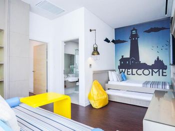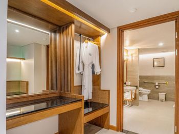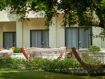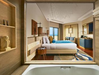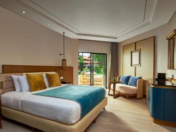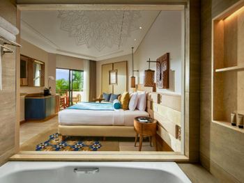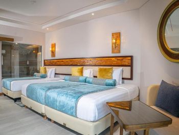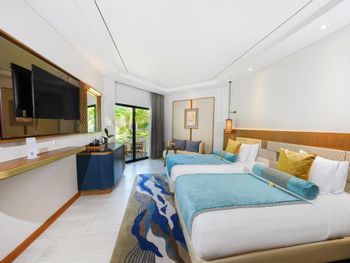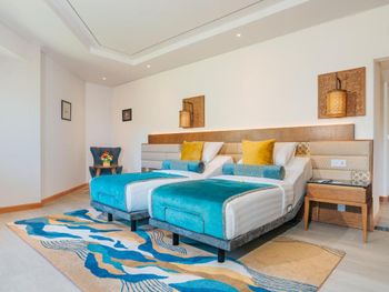The resort is comprised of two distinct buildings. The Family Paradise is designed specifically for families, offering eight types of spacious rooms that accommodate four to ten guests. This building includes a vibrant kids' club, a mini-water park, watersides, and a fun-filled games lounge. In contrast, the larger Main Building features an adults-only ocean front infinity pool, a main pool, and the expansive Thalasso Spa, which boasts a heated fresh seawater jet pool and a wide range of rejuvenating treatments.