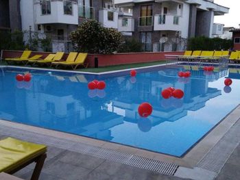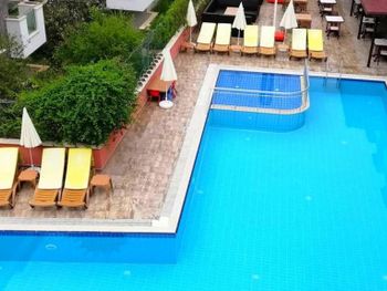 Бассейн хороший еда вкусная Кому не хватает мяса вам либо не в Турцию либо берите дорогой отель Мне всего хватало Мебель в номерах не очень новая. Но если вы приехали отдыхать На неё не обращаете внимание. В номере бываешь тупо поспать. Кто хочет ночной отдых возможно нужно брать отель ближе. От центра развлечений 20-30 минут. Я молода мне не составляла труда ходить пешком. Самое главное едти с хорошим настроением. Даже если возникнут какие то вопросы персонал быстро решит.