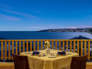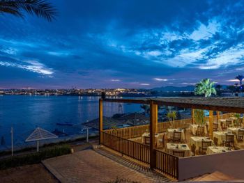 Большой бассейн без подогрева,в меню практически отсутствовали рыба и морепродукты,качество алкоголя и кофе оставляет желать лучшего;выход в море с понтона с одной лестницей