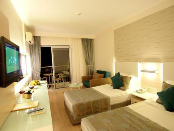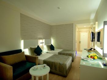 В каждом номере имеются балконы, с некоторых из которых открывается живописный вид на Средиземное море. Номера отеля Grand Okan оснащены мини-баром и кондиционером.
