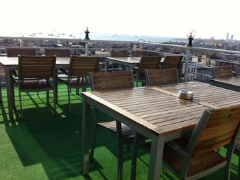 завтрак в открытом ресторане верхнего этажа с видом на море и чайками великолепен