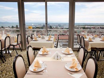 Турецкий завтрак "шведский стол" со свежим хлебом и оливками подается ежедневно в главном ресторане с большими окнами и видом на город. В снэк-баре и кафе Aquarium гости могут заказать напитки и закуски.