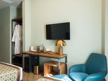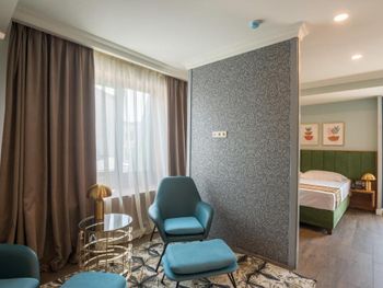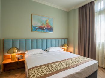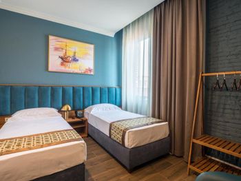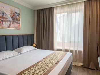 Для 2 взрослых и 2 детей номер в целом подходит. Хорошие кровати, чистая постель. Завтрак, 4из10. Локация хорошая. Какой-то минибар есть, это уже хорошо. На верхнем этаже есть ресторан. Но когда мы прибыли поздно вечером и спросили у мальчика на ресепшен где покушать, он нам не предложил подняться на верх. Мы бы точно успели что-то заказать. Но пришлось бродить в потемках с детьми и искать где покушать.
