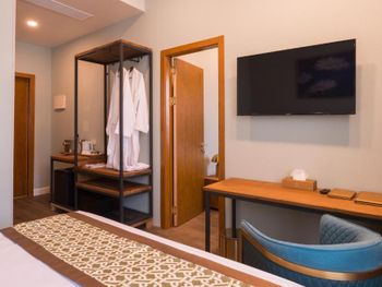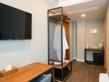 Небольшой номер, нет шкафа, но в остальном все отлично. Очень удобная кровать, все чисто.