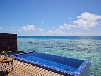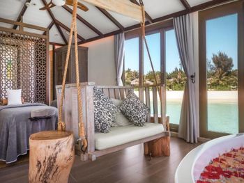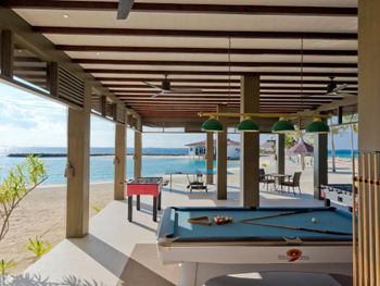 Отличный дизайн вилл, неплохой домашний риф (особенно возле вилл на рифе). Хороший набор косметических принадлежностей. Хорошие, разнообразные завтраки. есть свежевыжатые соки. Красивый бассейн с переливом. Хороший выбор вин. По соотношению цена-качество советую брать виллы в лагуне, хоть они и самые дешевые. Во первых рядом с ними нет кораллов, достаточно глубоко и удобно купаться, а во вторых с этих вилл видно и рассвет и закат, в отличие от вилл на океане, где солнца нет ни утром, ни после 4, глубина чуть выше колена, а в воду заходить опасно, так как на дне ежи и кораллы, можно пораниться, особенно в отлив. На кораллы по идее можно заплыть и с берега.
