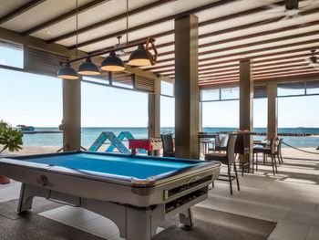 Есть бильярдный стол. Несколько настольных игр, настольный хоккей.