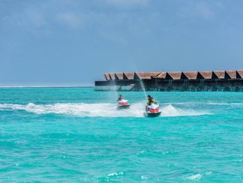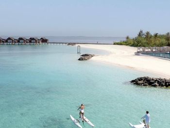 Ну во-первых за 20 минутную поездку на катере с нас взяли (со скидкой) по 145 долларов с человека (туда и обратно). Порция картошки фри 12 долларов, все остальное совершенный беспредел по цене. Пляжей немного и они не оборудованы ничем. Всю неделю дул ветер, находится на пляже (и на веранде виллы, которая с бассейном) было невозможно. Единственный нормальный пляж возле ресторана Edge, но он в общем скорее для персонала и рядом со сливной трубой. То есть когда ветер дует от Мале то пахнет. У нас была самая дальняя вилла на "хвосте", это 1000 шагов до ресторана, очень спортивно. Все сильно дорого и непонятно почему.