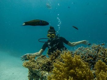 Абсолютно убитый риф, кораллов нет. Рыбки есть.