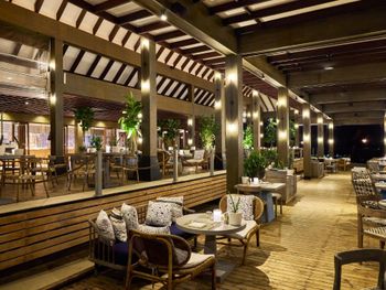 В отеле среди удобств 3 ресторана и бар с пейзажным бассейном, а также ресторан изысканной кухни. Гости могут заказать уникальный ужин, посетить оздоровительный спа-центр, заняться водными видами спорта, дайвингом и многим другим.