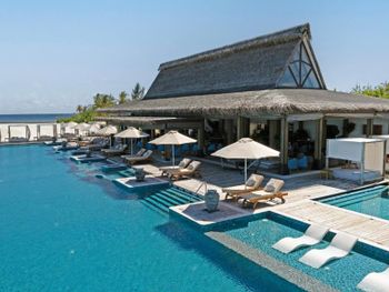 Цена на трансфер 308$ за двоих, это как долететь на гидроплане, хотя поездка до отеля на катере составляет всего 20 минут. НЕ адекватные цены на еду и алкоголь, даже по меркам Мальдив. Пицца 29$, салат 22$, качество еды при этом посредственное (и это в баре), просеко около 90, пиво около 13, вино не менее 60$ за бутылку. Если брать комплексный обед, то больше 110$ на двоих без напитков. Про ресторан я вообще молчу. Песок на пляжах вперемешку с кораллами, так как он во многом намыт со дна океана, ходить босиком очень не удобно. По отелю постоянно и много ездят электрокары и в основном на них передвигается персонал. Так себе удовольствие от них уворачиваться. Бассейн хоть и красивый, якобы есть зоны с гидромассажем, но фактически в воде бьют кое как тонкие струйки. Есть места в бассене где посидеть и полежать, но напитки с собой брать в бассейн нельзя и это странно для такого отеля. На запросы по почте отель может отвечать по 8 часов, а на звонки могут вообще не отвечать часами. Представляете как может оказаться весело если у вас возникнет срочный вопрос.... Будьте внимательны, если переезжаете на этот остров с другого острова на Мальдивах они требуют тест на Covid 19 не позднее 72 часов!!!