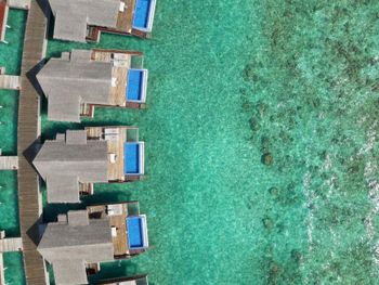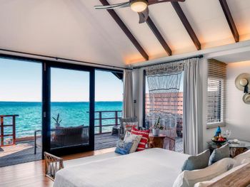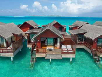 Мы жили в домиках на воде, сам домик в целом комфортный, но есть ряд неудобств: лакированный или чем-то покрытый пол в домике...очень скользко особенно мокрыми ногами после моря; постоянно мимо домика по дощатой дорожке ездят багги (электрокары)....это не только слышно но и домик вибрирует....и это и днем и ночью...также от них нужно постоянно уворачиваться...так как дорожка одна и для багги и для пешеходов.