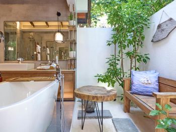 - [ ] Жили в ocean water villa #37. Отличное расположение, все в пешей доступности! Хороший wifi, косметика с приятным запахом лемонграсса, широкая кровать, все чисто и удобно.