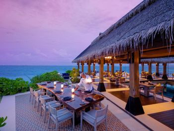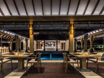 Недалеко от Мале. Хорошая и разнообразная еда, очень красивый основной ресторан с великолепным панорамным видом, приятный и оригинальный ресторан а ля карт Fire Door, с красивой подачей блюд.