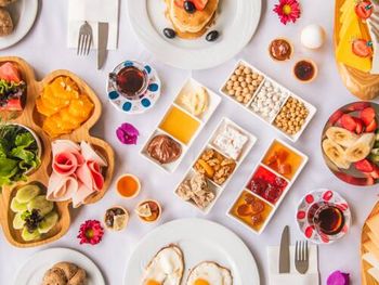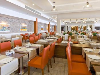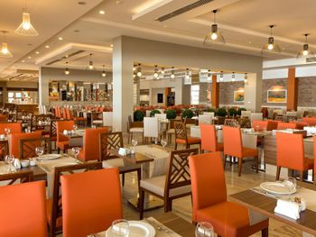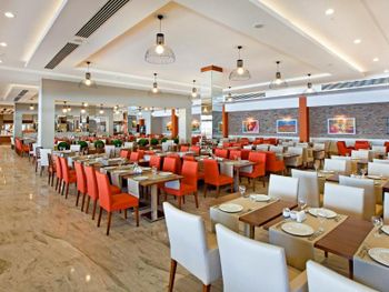 Каждый день для гостей сервируют завтрак, обед и ужин в формате «шведский стол» из блюд турецкой и интернациональной кухни В течение дня гостям предлагают питу, мороженое, кофе и выпечку. В ресторане с обслуживанием по меню подают блюда из рыбы, блюда на гриле, а также блюда китайской и итальянской кухни.