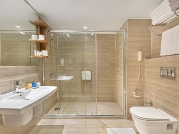 Номера отеля Lara Grand Park обставлены современной мебелью. Собственная ванная комната всех номеров укомплектована бесплатными туалетно-косметическими принадлежностями. В числе удобств сейф. Из всех номеров открывается красивый вид на город, сад или море.