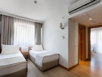 Полное огорчение и разочарование по приезду в гостиницу ,путешествовали с семьёй и собакой ,поэтому выбор гостиниц был очень скромным. Думаю что не вернусь туда ,хотя отдохнули очень хорошо ,но это все заслуга вкусной еды и тёплого моря) гостиница а-ля жилой комплекс состоящий из корпусов , Очень многолюдно, громко , во время обеда так вообще «как на базаре» готовить на всех не усевают ,иногда приходилось ждать. Море через дорогу ,типа 100 метров ,но приходится переходить дорогу и фигачить по жаре ,потому что машина которая должна возить людей на пляж не всегда их возит потому что она не всегда ездит)))Номера старые, гулять негде , зелени нет вооообще , везде корпуса , постоянное ощущение что сотрудники просто не успевают выполнять свою работу. Во время заезда по классике рецепшен решил нас обмануть с номером ,у них в принципе всегда были проблемы с постояльцами. Имейте в виду , они всегда регистрируют с 12.00 если даже вы приедете в 4 утра , вы будете сидеть и ждать 12 часов. Заплатила за собаку 300$, до сих пор не поняла за что. Не разрешают выводить на территорию,не предоставляют ничего ,те начиная с корзинки , мисок , все своё. Хотя на букинге информация другая. В общем, по атмосфере претензий нет , Турция это Турция , но гостиница на откровенно ***!
