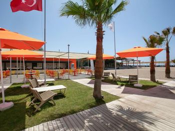 Питание. Очень напрягали очереди. Везде. Создалось устойчивое ощущение, что еду в буквальном смысле приходится себе доставать. Например. Закусочная на пляже. Ты лежишь на лежаке и видишь, что люди возвращаются из закусочной с арбузом. Ты сразу встаёшь и идёшь туда. Но арбуза уже нет. И когда принесут ещё, не известно. Может, и не принесут. Ещё пример. Там же лепёшки - гёзлеме. Сами лепёшки вкусные, потому что с пылу, с жару, но надо отстоять очередь. Как-то я увидела, что народу немного, и встала в очередь. Передо мной было 5 человек. Я стояла 25-30 минут. На ужине в основном ресторане за мясом на гриле очередь. Всегда. Рано ты пришел на ужин или поздно. Очередь неминуема. Минут 15-20. Мы несколько раз стояли, и получали какие-то невнятные куски птицы - вроде на вкус курица, а что это за части тела - непонятно!!! От того, что всё время всё приходится отхватывать, люди начинают брать больше, чем им нужно: как-то мой муж стоял в очереди за вафлями, и они начали заканчиваться, украинская семья, видя это, набрала несколько полных тарелок вафель - "не пропадёт"! Можно ли было есть мясо, не стоя в очередях? Да, бывали блюда мясо-овощные типа соте. Вот их мы и если в основном. Кроме проблем с доступностью еды - проблема в самой еде, может быть, в количестве специй. У меня почти постоянно была изжога!!! При этом рядом нормальных ресторанов, кроме отельных, не было, только фаст-фуд. Можно пробовать рестораны а ля карт, мы были в том, что на крыше, там тоже острая еда! Булки на завтраке полностью разбирают уже к 9.30, хотя завтрак до 10.00. Но уже в 9.30 этих несчастных свежих булок, которые не особенно-то и вкусны, уже нет. Муж несколько раз приходил к 7 утра и видел, как гости разбирают эти булки, наваливая полные тарелки!!! Даже смешно. А потому что люди быстро привыкают, что в отеле дефицит всего, и начинают брать впрок - видимо, так! По ассортименту. Овощи свежие есть, зелень. Но вот я не веган, к сожалению.