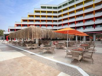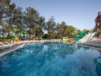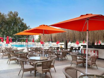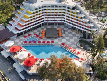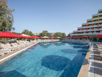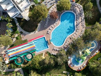 Время заселения 14:00 но заселили только в 16:00 На рецепшене злая сотрудница при мне послала матом по русски немецкую женщину Отель полный местных Турков Везде грязь. Все старое. Еда с помойки ближайшей. Пиво и Вино пить не возможно. Кушать ходили на улицу в ресторан. Весь газон вокруг бассейна умер и всю грязь ногами тащат в бассейн. По вечерам в этом же бассейне купаются утки.